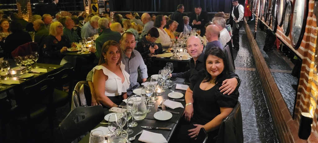 La noche comenzó con una degustación de vinos. Pudimos comparar esta degustación, con las que habíamos hecho en los dos viñedos de Mendoza. La muchacha de este sitio era como una principiante, comparada con los que nos habían educado en Mendoza. Esta muchacha no les llegaba a los tobillos a los otros. Además hablaba muy pasito; era difícil escucharla. Correa le pidió el favor de que hablara un poquito mas fuerte. No fue un cambio significativo el que ella hizo, aunque si mejoró un poco.