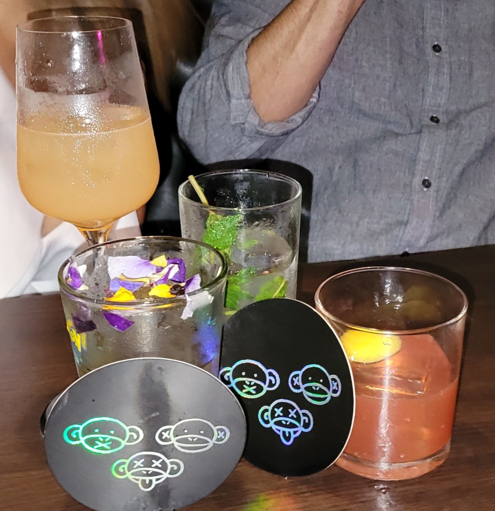 En este bar pedimos tres cocteles del menú, y Correa le dijo a la muchacha que nos atendió que lo ‘sorprendiera’. A final de cuentas no tuvimos consenso en cuanto a los cocteles. A mi me gustó el mío; me parecieron muy suaves los de las muchachas, y me pareció interesante el de la ‘sorpresa’ de Alejo. Sammy me dice que, en general, ninguno estuvo ni muy bueno, ni muy maluco.
