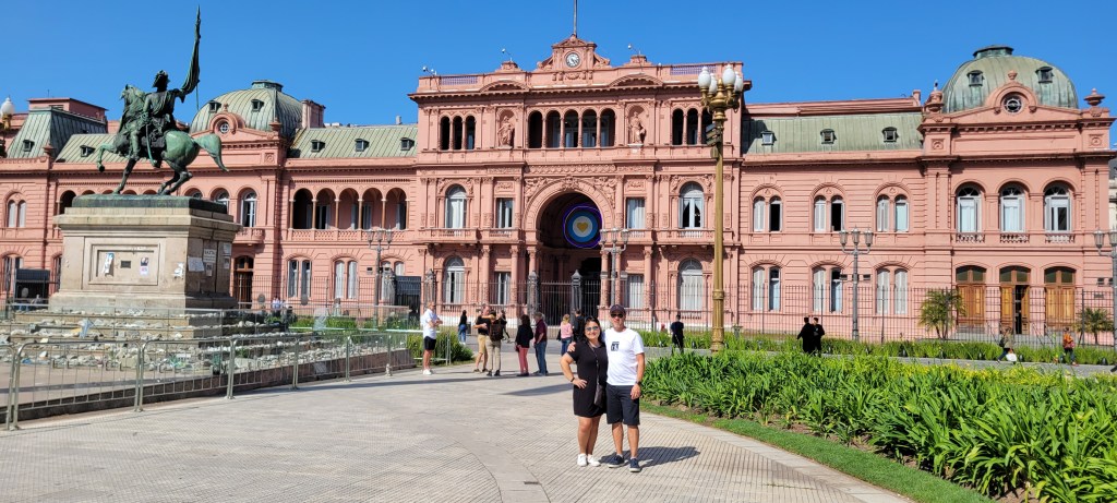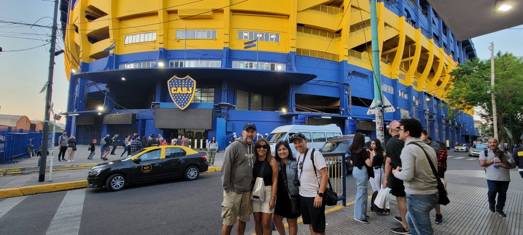 Luego al sitio insigne de Buenos Aires, la Plaza de Mayo. Esto fue como matar dos pájaros de un tiro, pues esta plaza está al frente de la Casa Rosada, que es la sede de la presidencia de Argentina. Había policía por ahí cerca, y nos dejaron parquear en un lado de la calle que decía que no se podía, para tomarnos fotos en el parque. Una vez nos tomamos todas las fotos que quisimos, nos dirigimos a La Bombonera, la sede del equipo Boca Juniors. Ese equipo es el que mas veces ha ganado el campeonato argentino. Coincidencialmente el día anterior, domingo 23, el Boca se había coronado campeón nuevamente. Una canción que escuché por allá, que sonaba como rock en español, tenía una línea que decía que la noche tenía más estrellas que el escudo del Boca. Luego fuimos a la calle Caminito, que queda como a cuatro cuadras de La Bombonera.
