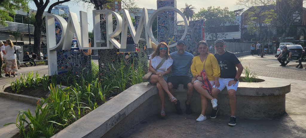 Yo estaba haciendo toda esta matemática en mi cabeza, y pensaba que si íbamos al restaurante a las 5 y media, nos cuadraba todo para poder dormir un poco más. Pues la primera sorpresa fue la del horario del restaurante. Nos dijeron que volviéramos a las 6 y 10 para que nos pusieran en la lista. Mientras tanto, caminamos por ahí cerca en Palermo.