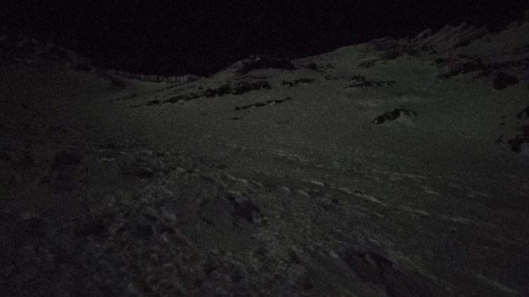 Esa zona en esta montaña es la más difícil de todas, por lo empinada que es. Comencé mi caminata a las 3 y media, pero a los 10 minutos noté que no había nadie. Pensé seguir un poco más para ver si de pronto veía luces más abajo de caminantes subiendo.