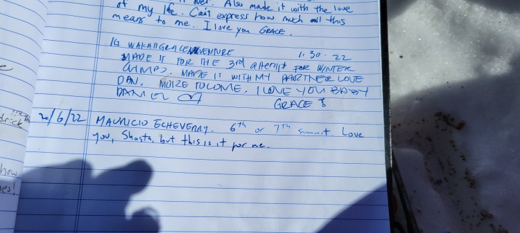 “6ª o 7ª cima. Te amo, Shasta, pero esto es ya todo para mí”.
